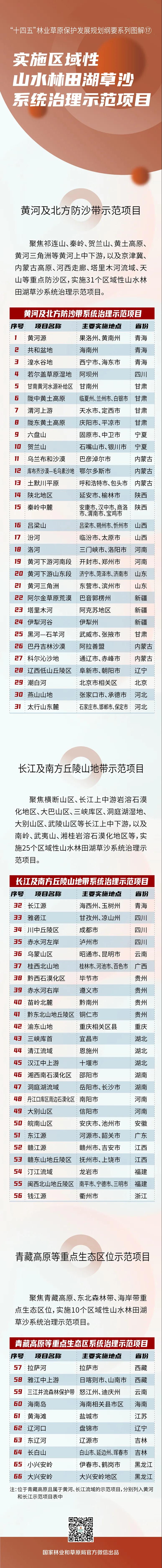 “十四五”林草规划图解⒄|实施区域性山水林田湖草沙系统治理示范项目