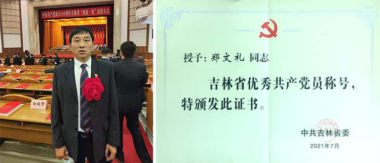 郑文礼同志1980年参加工作,40多年来扎根基层,无怨无悔,默默耕耘,始终从事设备管理和机械技术工作,为林业事业奉献了自己大半人生。他在实践中学习,在学习中成长,逐渐成长为企业不可或缺的技术骨干;入党后,他始终严格要求自己,团结群众,服从领导,工作上精益求精,生活中乐于助人,受到广大干部群众的一致好评,累计获得过多项个人荣誉。特别是2001年调入泉阳泉公司后,被企业连年评为劳动模范、优秀共产党员。2011年被吉林森工集团选为优秀共产党员代表;2018年被选为吉林省国资委十九大代表候选人;2019年被评为白山市劳动模范,同时被吉林省国资委党委评为优秀共产党员。
