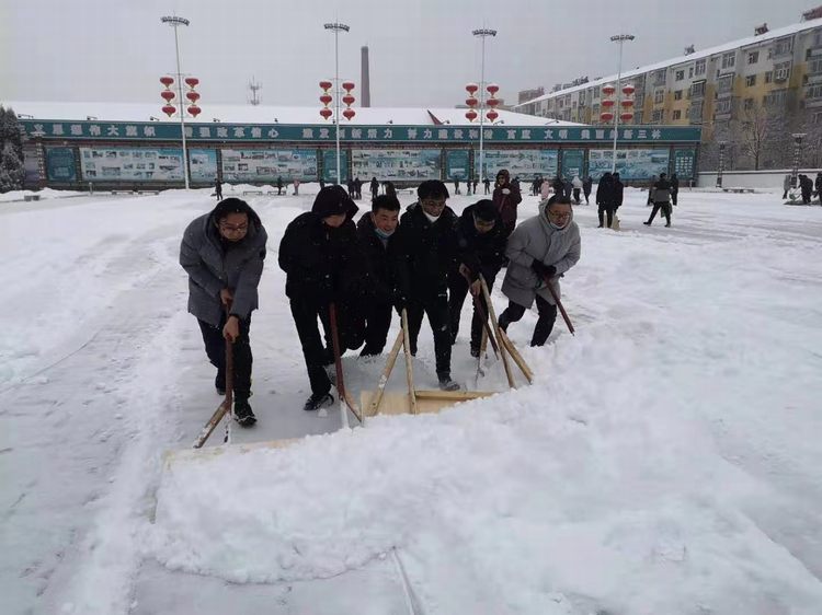 密密匝匝的雪片还在跋扈飞舞,挥动工具的人们更是没有停下来的意思,而是迎着风雪,逆锋争斗!没有人提出等雪小一小或停下来再清理。