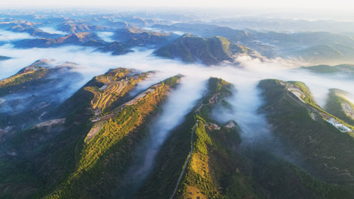 陕西省吴起县昔日的黄土高坡披彩挂绿。 宗明远摄(新华社发)