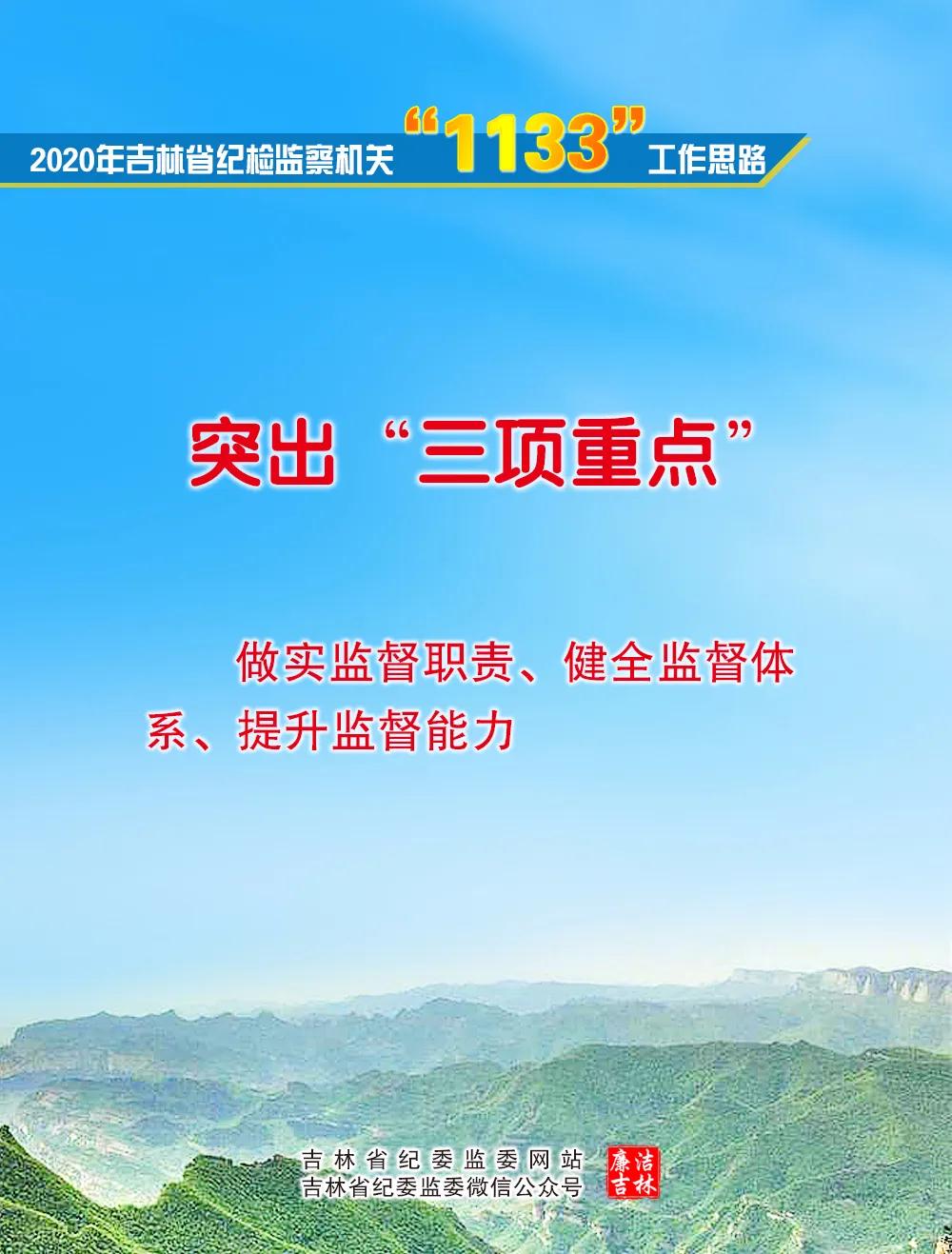 【开栏的话】 省纪委十一届五次全会提出谋划和推进纪检监察工作的“1133”工作思路,即明确“一个目标”,为决胜全面建成小康社会、决战脱贫攻坚、加快实现新时代吉林全面振兴全方位振兴提供坚强保障;贯穿“一条主线”,推动新时代吉林纪检监察工作高质量发展;突出“三项重点”,做实监督职责、健全监督体系、提升监督能力;深化“三个统筹”,就是统筹不敢腐、不能腐、不想腐,统筹纪律检查体制改革、监察体制改革和纪检监察机构改革,统筹转职能、转方式、转作风。 为落实好2020年重点任务,省纪委监委新媒体着力打造宣传“两个维护”落实、推动工作、教育干部、引导舆论“四个平台”,推出省纪委十一届五次全会解读系列文章、贯彻落实全会精神“做实监督职责”“健全监督体系”“提升监督能力”等系列稿件,跟进反映全省纪检监察机关贯彻落实全会精神的具体举措、成效,推动吉林纪检监察工作高质量发展。敬请期待。