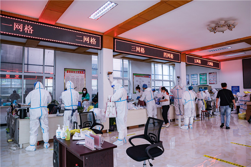 疫情严峻之时,哪里任务险重,哪里就有党组织扎实有效的工作,哪里就有党员当先锋作表率。面对新冠疫情的来势汹汹,在公司党委的倡议领导下,党员干部挺身而出、勇当先锋,让党的旗帜在防控疫情斗争第一线高高飘扬。各级党组织先后建立一线临时党支部12个、党员突击队23支、党员先锋岗34个,划分党员责任区53个,150名领导干部、387名党员积极投身疫情防控工作;公司党委组织部坚持强化正向激励,在关心关爱党员干部的同时,将疫情防控工作表现纳入政治档案;公司纪委战“疫”当口,挺“纪”在前,延伸监督触角,下沉监督力量,以监督实效扫除一线防疫漏洞盲点,保障疫情防控工作各环节高效顺畅;公司工会组建了一支近百人的疫情防控志愿后备服务队,在人员储备、组织调配、信息传导等方面做好万全保障……从争分夺秒挨家挨户的检测排查,到夜以继日卡点巡逻的秩序维护,从顶风冒雨配送物资的便民服务,到身披“白甲”不留死角的集中消杀,广大党员干部用行动践行着“随时准备为党和人民牺牲一切”的入党誓言。