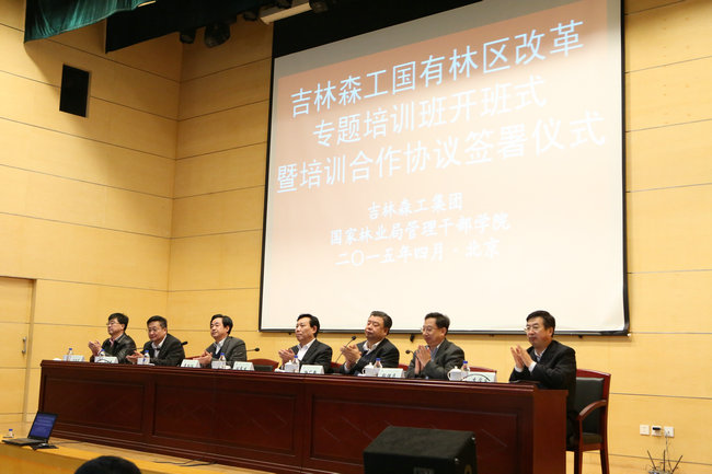 4月7日,刚刚过完清明小长假,吉林森工集团组织国内首个国有林区改革专题培训班,到国家林业局管理干部学院进行为期一周的学习,专项研究落实从今年4月1日起东北、内蒙古重点国有林区全面停止天然林商业性采伐,以及国有林区改革事宜。国家林业局副局长刘东生出席开班式并作重要讲话。